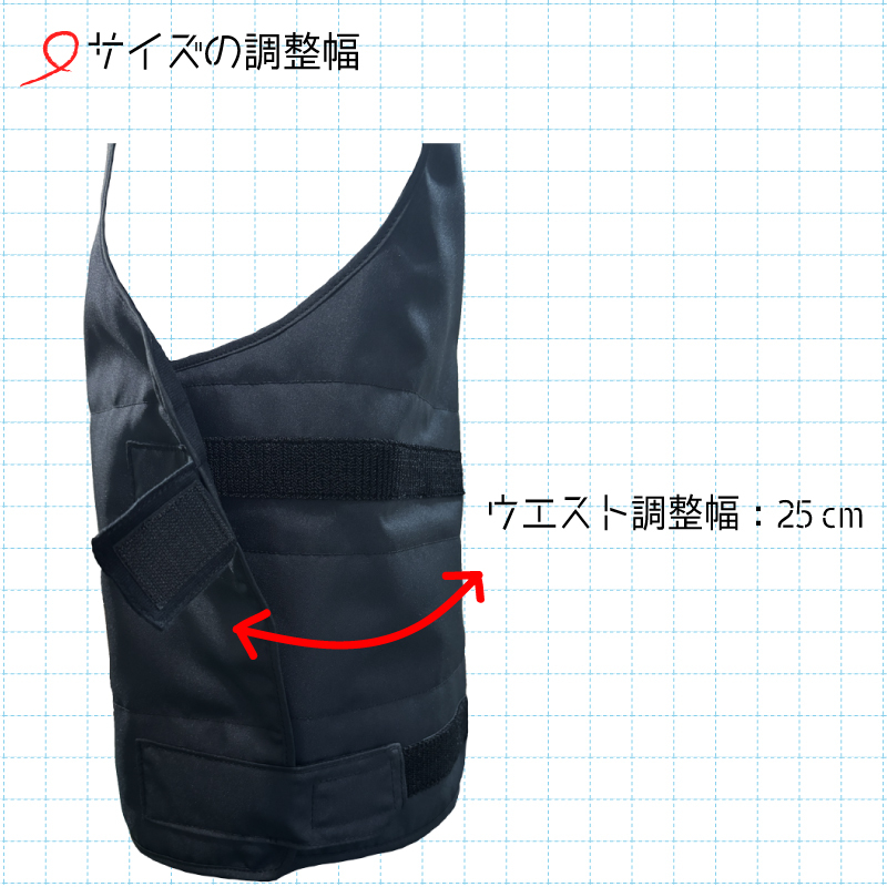 前身頃と後身頃が完全に分離する構造で、面チャックを使い各部のサイズ調整が自由自在。ユーザーの体型&好みにジャストフィット致します。