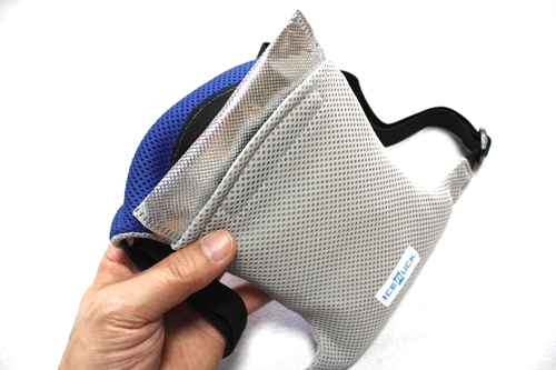 また、身長や体型に合わせ、ゴムバンドの長さを自由に調節することが可能です。(男女兼用、お子様にもご使用OK)その他、使用する保冷剤は冷凍する際の冷凍庫の容量を考慮した上で、場所をとらないコンパクトな大きさとし、保冷袋に収納した状態(保冷剤2個収納)では、中央部分で分割されるので自由に屈曲、装着時のいかなる動きにも対応でき、 違和感を感じることも押さえています。保冷剤を収納した状態で、約340gと軽量(リンゴ1個程度の重さ)のため、重さが気になる事もありません。さらに、不要になった際は中身を消臭剤として再利用もできるよう環境面も配慮しています。冷却効果持続時間は使用状況にもよちますが、3〜4時間。交換用保冷剤を用いれば、長時間の使用も可能です。保冷袋には出し入れ口に高気密チャックを取り付けていますので、万が一、装着時に保冷剤の容器が破損したとしても、内容物が保冷袋の外側に漏れることを防止致します。保冷剤、保冷袋ともにアイスリュック専用。 バンドサイズはフリーサイズ(男女兼用)となっております。『アイスリュック』は日本製。一つ一つ丁寧に手作りしております。