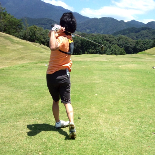 アイスリュックを背負っている肩甲骨の間を