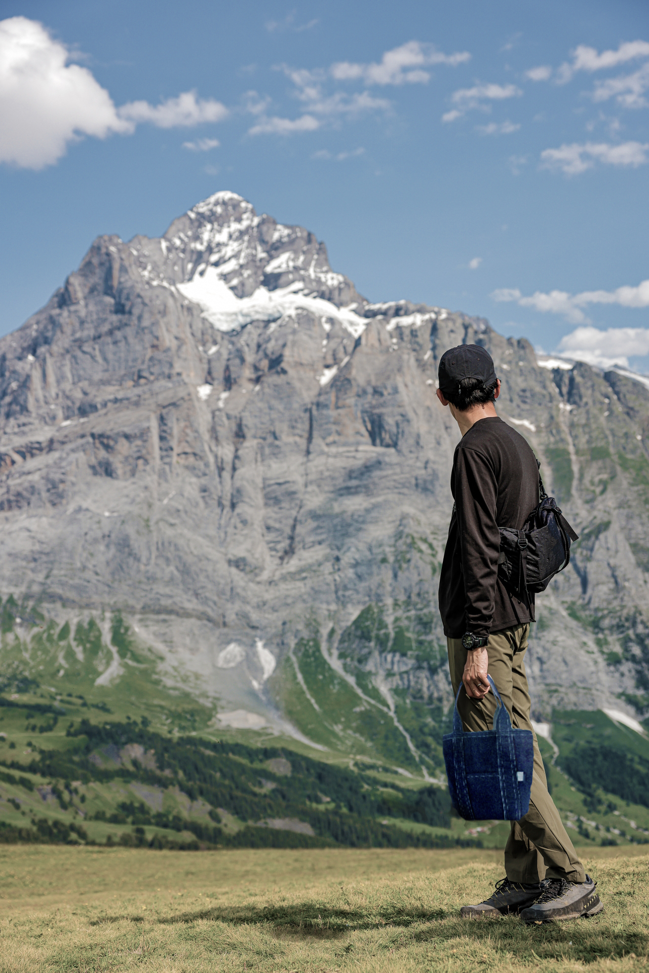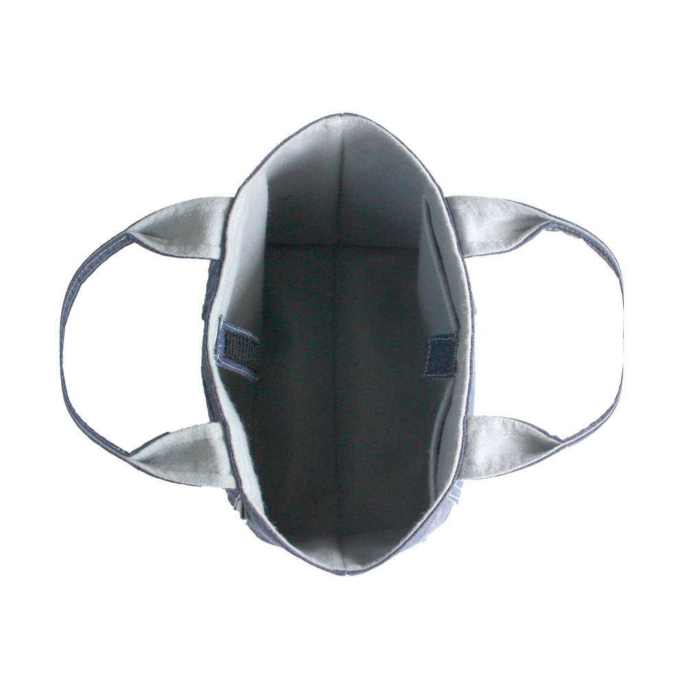 表生地にはデニム生地。内側の生地にはフエルトを使用。生地の風合いの違いがオシャレ度を引き上げています。デニム生地ならではの経年による風合いの変化もお楽しみ下さい。